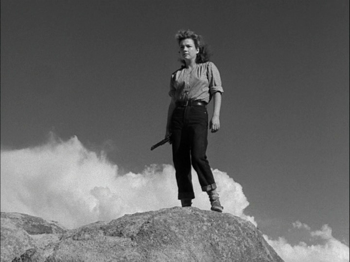 This film, and Winchester ’73, is more widely seen than a lot of the noir Westerns, and both have been heavily dissected and studied, but I just have to say Ben is an absolutely amazing performance, Ryan morphing into a sadistic murderer like he was born to it, and matching Duryea’s Waco performance as a scene-stealer. This film has all the noir requirements, as far as I’m concerned, and the trees and rocky defiles substitute well for the claustrophobic, cheap rooms and artificial canyons of the cities. The pulp elements are there, too, and Short and Haycox would recognize it as one of their progeny.