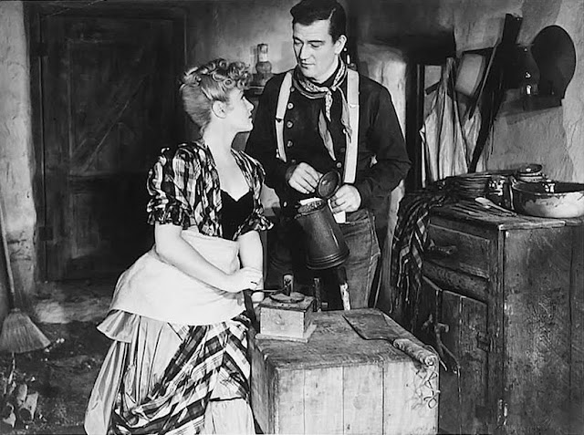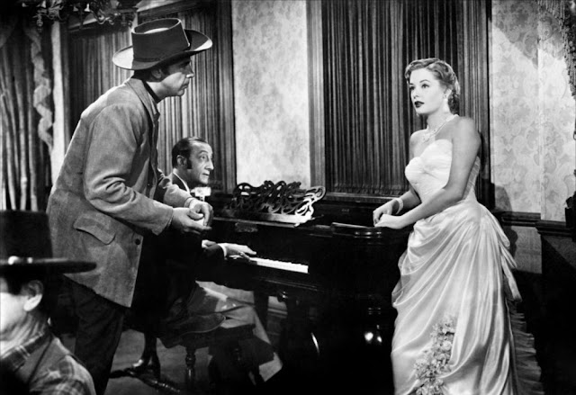 His pseudonymous Dutch Henry Brown is just as crazy as or worse than Lin. The reason revealed is a family connection between them, which makes their conflict even more twisted. Millard Mitchell is Lin’s saddle pal, High Spade, and it is one of Mitchell’s signature roles. Stuart Lake scripted the adaptation of Borden Chase’s story, and it’s in fine modern Western pulp style. There’s a great little scene where Lin is walking into a saloon in Dodge City with Will Geer’s Wyatt Earp, and Lin and Dutch Henry see each other at the same time, and slap leather simultaneously, both forgetting they had surrendered their guns upon entering Dodge City - the looks on their faces are the first hints of the hatred that both men can barely control.