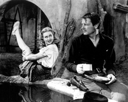 Jim has to deny knowing the mystery corpse, and all through the rest of the movie, subtle little scenes involving Danny’s body pop up as reminders of the fatalism that permeates the film. Ellen practically invites Jim in for the night, but he’s trying not to become entangled in Tangle Blue – a useless endeavor, as he’s already in love with her. MacMurray is great as a cool-headed criminal, often quietly rolling a cigarette when danger is near, and he coldly analyzes everything before he makes a move. The film is set mostly at night, with shadows and danger, and it’s an interesting comparison to the godawful Oregon Trail, released later the same year, and also starring Mac Murray, which has all the classic bad things H’wood could bring to Westerns- it’s the anti-Haycox western.
